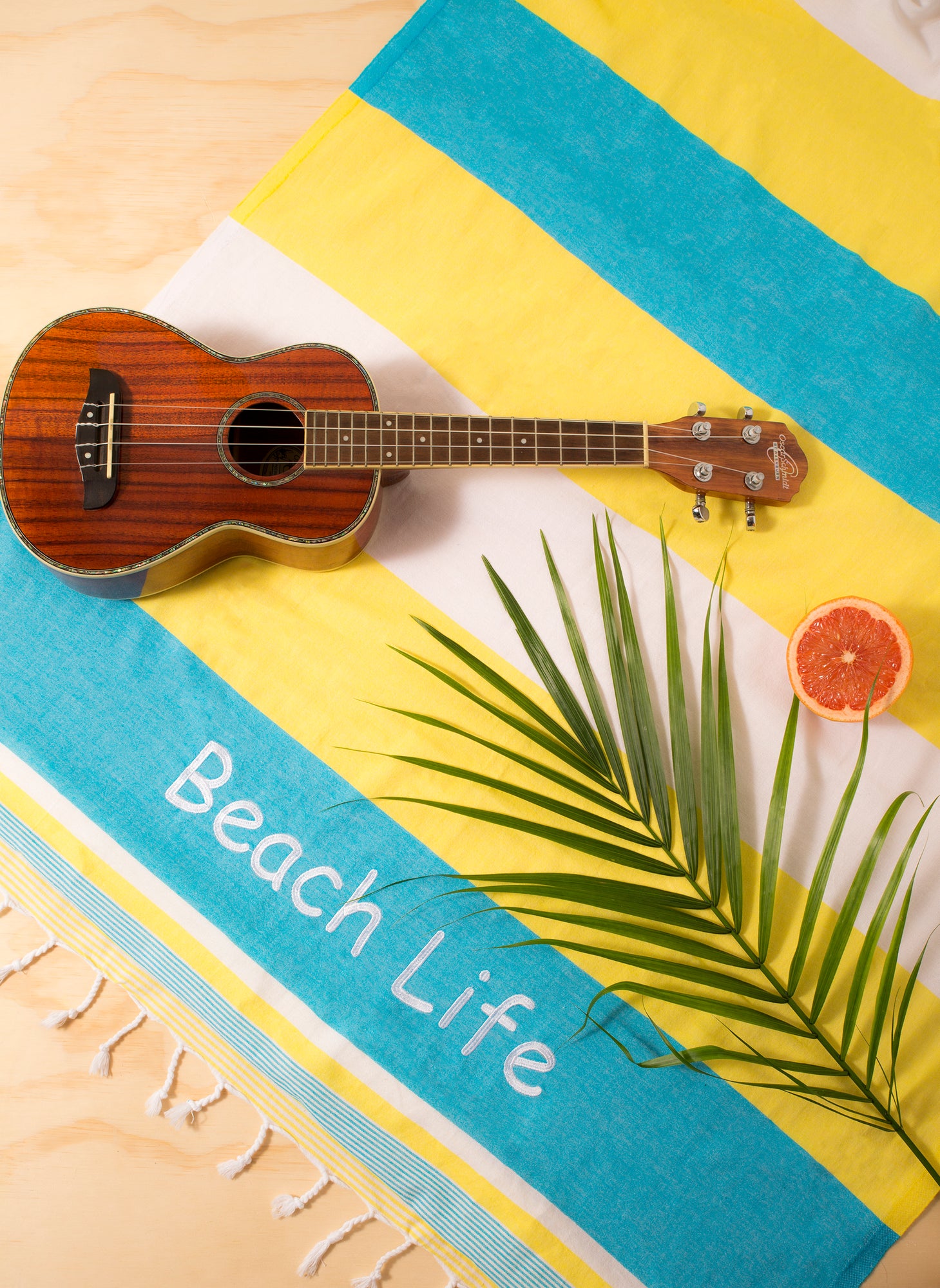 On vacation, you can effortlessly wear the towel as a scarf in the taxi, a blanket on the plane, a hair towel in the hotel room, a sarong on the way to the beach, a towel on the beach, and as a shawl over a dress at dinner.